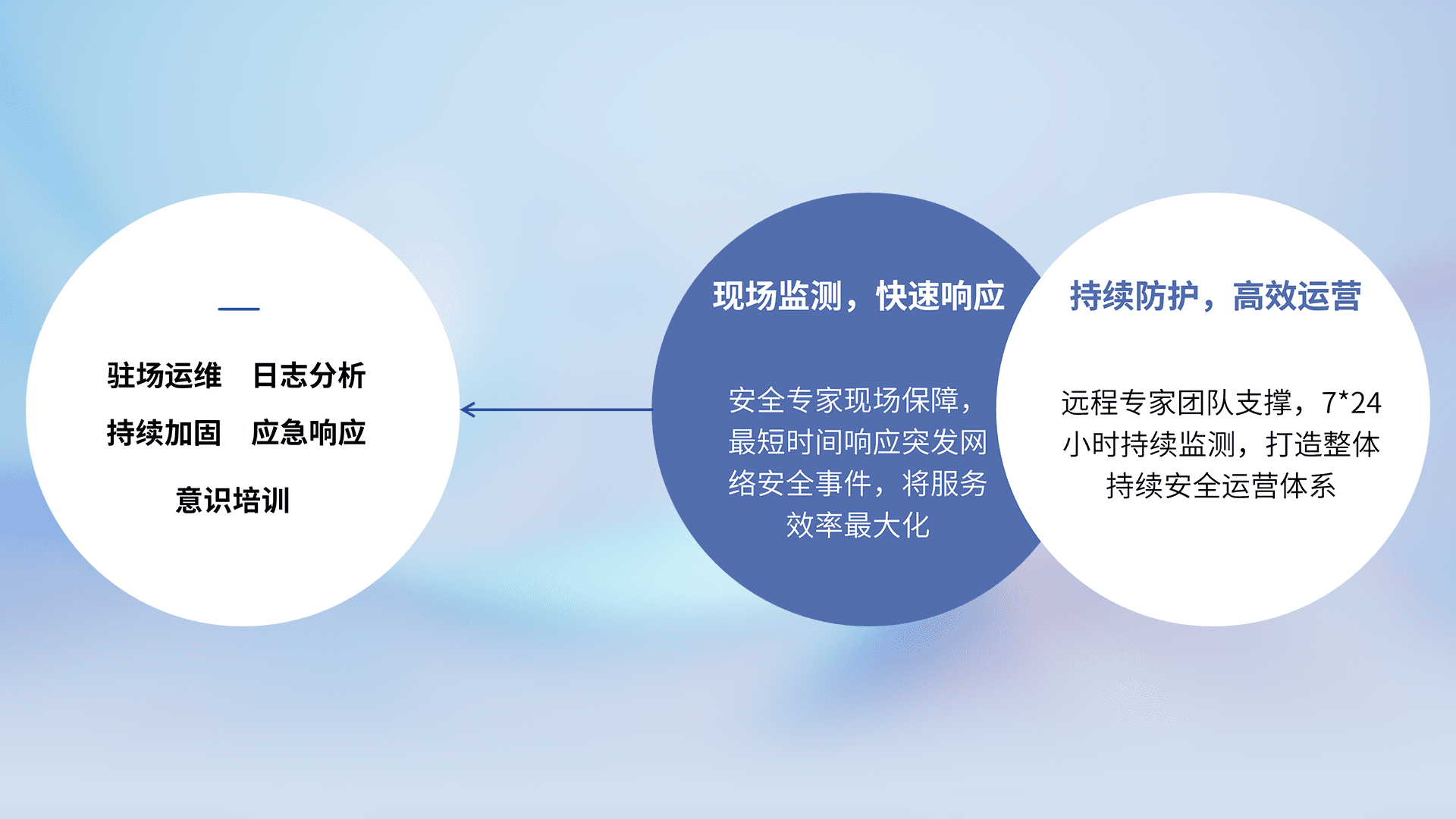 7X24小时持续监测安全事件,保持安全策略有效性,降低资产脆弱性风险,,,,精准拦截黑客攻击,,,,减少被黑客利用的机会,,,第一时间遏制,,,,降低损失。。